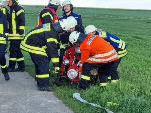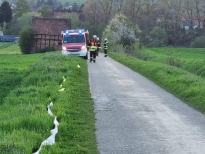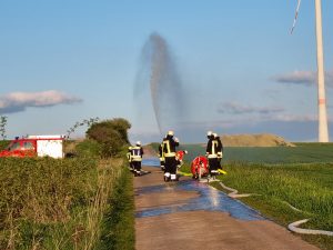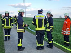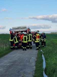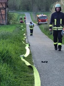 | Ausbildungsdienst Feuerwehr-Löschzug 5 In einem gemeinsamen Ausbildungs-Dienst des Löschzuges 5 der Stadt Dassel – Feuerwehren Deitersen, Eilensen-Krimmensen und Ellensen – in der Gemarkung Lüthorst am Dienstag, 21.04.2026 wurde die Zusammenarbeit beim Aufbau einer längeren Wasserförderstrecke sowie der Einsatz eines neuen schwimmenden Saugkorbs für offene Gewässer mit geringer Wassertiefe geübt. |